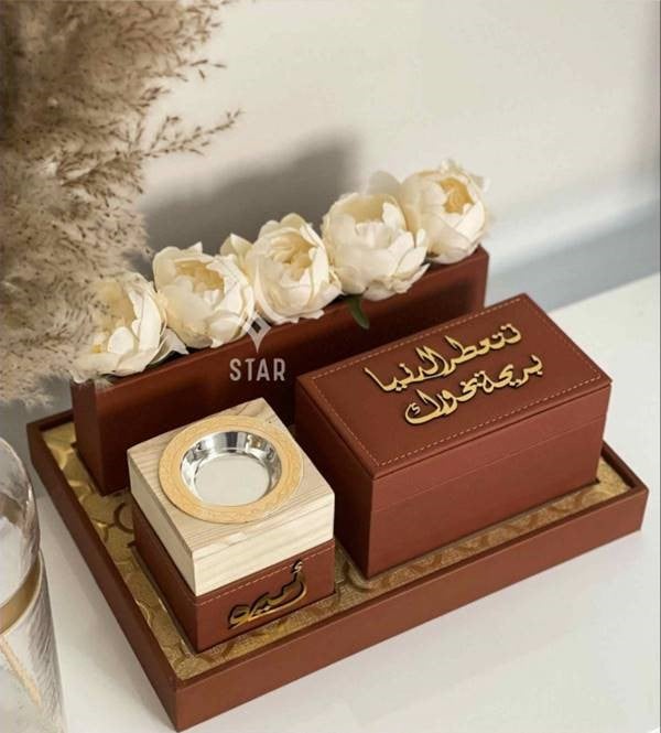 يمكنك الحصول على المبخرة الجلد مكتوب عليها الاسم الذي ترغب به، حيث يمكنك طلب المنتج واعطاءه كهدية لأي شخص ترغب به، ويتم صنع هذه المبخرة من اجود أنواع الخشب ثم يتم تغطيته بالجلد حتى يتم إضافة شكل مميز لها، بالإضافة إلى أن المبخرة تحصل عليها مع صينية واستاند و بوكس عود هدية، ويتوفر منها مقاسات مختلفة حيث يبدأ المقاس من 52 سنتيمتر إلى 35 سنتمتر، وتتميز بجودتها العالية التي تجعل المبخرة تدوم لفترة طويلة للغاية.